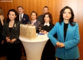The Minister of State for Relations with the Parliament, Elisa Spiropali, the Ambassador of the United States in Tirana, Yuri Kim and the Ambassador of Sweden in Tirana, Elsa Hastad during a charity evening at the Embassy of Ukraine in Tirana to collect funds to help those affected by Russian aggression in Ukraine. During the evening, a ball signed by ex-footballer Andreiy Shevchenko and boxing gloves signed by the Klitschko brothers were auctioned.