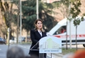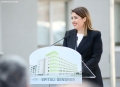 Minister of Health and Social Protection, Ogerta Manastirliu speaking during the opening ceremony of the new Central Hospital in the Mother Teresa University Hospital Center. The Central Hospital has an area of 23,290 m2, with a capacity of 345 beds where 14 specialized hospital medical services are accommodated.
