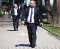MP Helidon Bushati entering a parliamentary session. During this session, deputies Belind Kellici and Luciano Boci gave up their mandate to run for the municipalities of Tirana and Elbasan, respectively, in the May 14 elections.