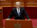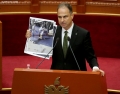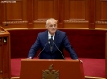 Former Prime minister, Sali Berisha speaking in a parliamentary session. During this session, deputies Belind Kellici and Luciano Boci gave up their mandate to run for the municipalities of Tirana and Elbasan, respectively, in the May 14 elections.
