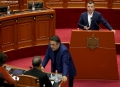 MP Bujar Leskaj speaking in a parliamentary session. During this session, deputies Belind Kellici and Luciano Boci gave up their mandate to run for the municipalities of Tirana and Elbasan, respectively, in the May 14 elections.