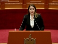 MP Erisa Xhixho speaking in a parliamentary session. During this session, deputies Belind Kellici and Luciano Boci gave up their mandate to run for the municipalities of Tirana and Elbasan, respectively, in the May 14 elections.