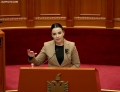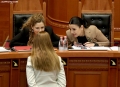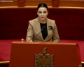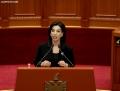 The Minister of Education and Sports, Evis Kushi speaking in a parliamentary session. During this session, deputies Belind Kellici and Luciano Boci gave up their mandate to run for the municipalities of Tirana and Elbasan, respectively, in the May 14 elections.