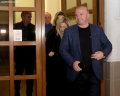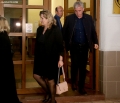 MP Lefter Geshtenja and Eralda Bano coming out of a meeting of the leadership of the Democratic Party and with the parliamentary group, held in the new headquarters of the DP. DP members spoke about the May 14 local elections, while Alibeaj said that the decisions will be formalized soon.