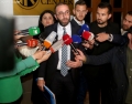 MP Gazment Bardhi speaking for journalists after a meeting of the leadership of the Democratic Party and with the parliamentary group, held at the new DP headquarters. DP members spoke about the May 14 local elections, while Alibeaj said that the decisions will be formalized soon.