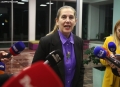 Minister of Tourism and Environment, Mirela Kumbaro speaking to journalists after leaving the headquarters of the Socialist Party in Tirana, after a meeting of the party leadership regarding the May 14 elections. After 3 hours, the political leaders of the districts announced the names of the candidates for each municipality, where most of them will run again.
