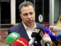 Minister of Defense, Niko Peleshi speaking to journalists after leaving the headquarters of the Socialist Party in Tirana, after a meeting of the party leadership regarding the May 14 elections. After 3 hours, the political leaders of the districts announced the names of the candidates for each municipality, where most of them will run again.