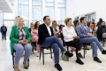 Lawyer Adriana Kalaja, candidate for the Municipality of Tirana, Belind Kellici and doctor Ilir Alimehmeti during the presentation of his new book Between Crimes and Miracles, at an event organized at the headquarters of the democratic party in the framework of the project DP headquarters beyond politics.