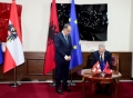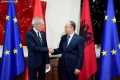 The President of the Federal Republic of Austria, Alexander Van Der Bellen and the President of the Republic of Albania, Bajram Begaj shaking hands before a joint conference in the premises of the Presidency. The two presidents spoke about the Ohrid agreement between Kosovo and Serbia, as well as bilateral relations between Albania and Austria.