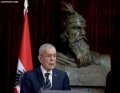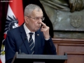 The President of the Federal Republic of Austria, Alexander Van Der Bellen speaking during a joint conference with the President of the Republic of Albania, Bajram Begaj in the premises of the Presidency. The two presidents spoke about the Ohrid agreement between Kosovo and Serbia, as well as bilateral relations between Albania and Austria.