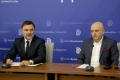 The chairman of the DP parliamentary group, Enkelejd Alibeaj and the candidate for the Tirana municipality, Roland Bejko speaking at a press conference at the new headquarters of the democratic party. Alibeaj presented Roland Bejko and Enriketa Papa (municipal council) as candidates for Tirana, while talking about the possibilities in the May 14 elections, while they will face not only the SP candidates, but also the group that supports Sali Berishen.