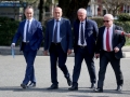 MP Luan Baci, Kastriot Piroli, Kasem Mahmutaj and Edmond Spaho entering a parliamentary session. In this session, a draft law, a draft resolution and a draft decision were approved.