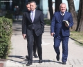 MP Bujar Leskaj and Isuf Celaj entering a parliamentary session. In this session, a draft law, a draft resolution and a draft decision were approved.