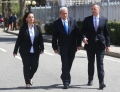MP Albana Vokshi, Sali Berisha and Isuf Celaj entering a parliamentary session. In this session, a draft law, a draft resolution and a draft decision were approved.