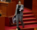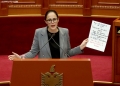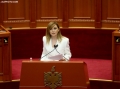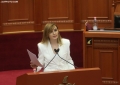 MP Jorida Tabaku speaking during a parliamentary session. In this session, a draft law, a draft resolution and a draft decision were approved.