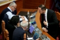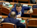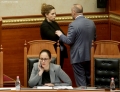 MPs Erion Brace and Pandeli Majko speaking during a parliamentary session. In this session, a draft law, a draft resolution and a draft decision were approved.