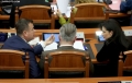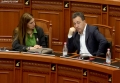 Minister of Tourism and Environment, Mirela Kumbaro and Minister of Defense, Niko Peleshi speaking during a parliamentary session. In this session, a draft law, a draft resolution and a draft decision were approved.