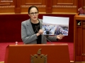 MP Enslemvera Zake speaking during a parliamentary session. In this session, a draft law, a draft resolution and a draft decision were approved.