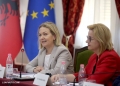 Klotilda Bushka and the representative of the Council of Europe, Louise Barton speaking during a table discussion in the premises of the parliament headquarters regarding the opening of files to former security and their removal from Albanian politics. During the discussions, the proposal of the group supporting Sali Berisha was excluded, while both sides agreed on the complete opening of the files.