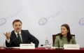 The chairman of the SP parliamentary group, Taulant Balla, Blerina Gjylameti, Klotilda Bushka and the representative of the Council of Europe, Louise Barton speaking during a table discussion in the premises of the parliament headquarters regarding the opening of files to former security and their removal from Albanian politics. During the discussions, the proposal of the group supporting Sali Berisha was excluded, while both sides agreed on the complete opening of the files.