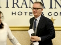 Italian Ambassador in Tirana, Fabrizio Bucci entering in a conference on the second call for the selection of projects of the Italo-Albanian Debt Conversion Program (IADSA II). The Italian-Albanian Cooperation and Development Program includes an innovative financing instrument, the Development Debt Conversion Program (IADSA), which aims to support the implementation of projects between the two countries.