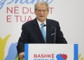 Former Prime Minister Sali Berisha speaking during a press conference. He attacked the head of SPAK, Altin Dumani, as a government servant.