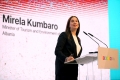 The Minister of Tourism and Environment, Mirela Kumbaro speaking during the first day of the International Tourism Forum in Tirana (FESTA), held in the Palace of Congresses. During the three days of the forum, 70 speakers will discuss important topics related to sustainable tourism and its future trends, such as the role of governments, development strategies, professions and new profiles of this sector.
