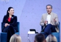 The Deputy Prime Minister and the Minister of Infrastructure and Energy, Belinda Balluku and the Investor from the United Arab Emirates, Mohamed Alabbar speaking during the second day of the International Tourism Forum in Tirana (FESTA) ) held in the Palace of Congresses. During the three days of the forum, 70 speakers will discuss important topics related to sustainable tourism and its future trends, such as the role of governments, development strategies, professions and new profiles of this sector.