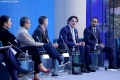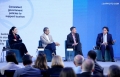 Deputy Prime Minister and Minister of Infrastructure and Energy, Belinda Balluku, Investor from the United Arab Emirates, Mohamed Alabbar, President of Wizz Air, Robert Carey and Director of Abi Bank, Andi Ballta speaking during the second day of the International Tourism Forum in Tirana (FESTA) held in the palace of Congresses. During the three days of the forum, 70 speakers will discuss important topics related to sustainable tourism and its future trends, such as the role of governments, development strategies, professions and new profiles of this sector.