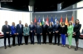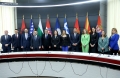 Participants posing during the second day of the International Tourism Forum in Tirana (FESTA) held in the Palace of Congresses. During the three days of the forum, 70 speakers will discuss important topics related to sustainable tourism and its future trends, such as the role of governments, development strategies, professions and new profiles of this sector.