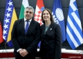 Secretary General of the World Tourism Organization, Zurab Pololikashvili and the Minister of Tourism and Environment, Mirela Kumbaro posing during the second day of the International Tourism Forum in Tirana (FESTA) held in the Palace of Congresses. During the three days of the forum, 70 speakers will discuss important topics related to sustainable tourism and its future trends, such as the role of governments, development strategies, professions and new profiles of this sector.