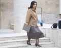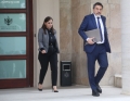 The Minister of Education and Sports, Evis Kushi, leaving the prime minister's office, after a government meeting.