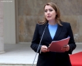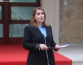 Deputy Prime Minister and Minister of Infrastructure and Energy, Belinda Balluku speaking at a press conference in front of the Prime Minister's office, after a meeting of government, regarding the approved decisions.