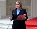 PRESS CONFERENCE AFTER THE GOVERNMENT MEETING - Deputy Prime Minister and Minister of Infrastructure and Energy, Belinda Balluku speaking at a press conference in front of the Prime Minister's office, after a meeting of government, regarding the approved decisions.