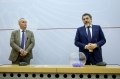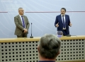 The Minister of the Interior, Bledar Cuci and the Director of the Police Supervision Agency, Ardi Veliu speaking during the procedure of casting the first lot for the transitory and periodic evaluation (vetting) of the employees of the State Police, the National Guard Republic and the Police Supervision Agency. At the end of it, 36 evaluation subjects were drawn that will undergo vetting in the three evaluation pillars; purity of face, wealth and professional skills.