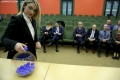 Minister of the Interior, Bledar Cuci and Deputy Minister of the Interior, Julian Hodaj during the procedure of casting the first lot for the transitory and periodic evaluation (vetting) of the employees of the State Police, the National Guard Republic and the Police Supervision Agency. At the end of it, 36 evaluation subjects were drawn that will undergo vetting in the three evaluation pillars; purity of face, wealth and professional skills.
