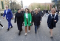 Speaker of parliament, Lindita Nikolla and Minister of State for Relations with the Parliament, Elisa Spiropali before the opening of the electoral campaign of the Socialist Party for the local elections on May 14. During the ceremony held in Skenderbej Square, the motto Never Back, Forward was revealed for these elections, while Prime Minister Edi Rama, party deputies and candidates for the country's municipalities planted 61 trees to symbolize the country's 61 municipalities.