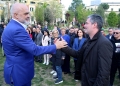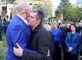 Prime Minister Edi Rama and the candidate for the municipality of Vlora, Ermal Dredha during the opening of the electoral campaign of the Socialist Party for the local elections on May 14. During the ceremony held in Skenderbej Square, the motto Never Back, Forward was revealed for these elections, while Prime Minister Edi Rama, party deputies and candidates for the country's municipalities planted 61 trees to symbolize the country's 61 municipalities.