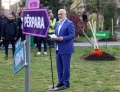 Mayor of Tirana Municipality, Erion Veliaj, MP Arben Pellumbi and Minister of Agriculture and Rural Development, Frida Krifca during the opening of the electoral campaign of the Socialist Party for the local elections on May 14. During the ceremony held in Skenderbej Square, the motto Never Back, Forward was revealed for these elections, while Prime Minister Edi Rama, party deputies and candidates for the country's municipalities planted 61 trees to symbolize the country's 61 municipalities.