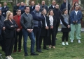 The mayor of Erseke, Erion Isai, the mayor of Durres, Emiriana Sako and the chairman of the SP parliamentary group, Taulant Balla during the opening of the electoral campaign of the Socialist Party for the local elections on May 14. During the ceremony held in Skenderbej Square, the motto Never Back, Forward was revealed for these elections, while Prime Minister Edi Rama, party deputies and candidates for the country's municipalities planted 61 trees to symbolize the country's 61 municipalities.