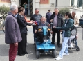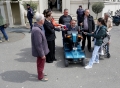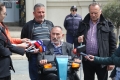 Paraplegic people talking to journalists during a protest in front of the Tirana Municipality. They protested the lack of special infrastructure in Tirana! They say that the lack of ramps near the polling stations endangers their right to vote on May 14.