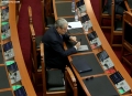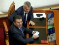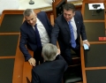 MP Vangjel Dule and Fatmir Mediu during a parliamentary session, in which the request of 35 opposition MPs for the establishment of an investigative commission to verify the procedures on the Port of Durres project was rejected and MP Shkelqim Bullari was sworn in.