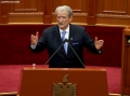 MP Sali Berisha speaking during a parliamentary session, in which the request of 35 opposition MPs for the establishment of an investigative commission to verify the procedures on the Port of Durres project was rejected and MP Shkelqim Bullari was sworn in.
