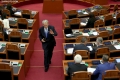 MP Sali Berisha during a parliamentary session, in which the request of 35 opposition MPs for the establishment of an investigative commission to verify the procedures on the Port of Durres project was rejected and MP Shkelqim Bullari was sworn in.