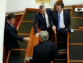 MP Sali Berisha, Vangjel Dule and Fatmir Mediu during a parliamentary session, in which the request of 35 opposition MPs for the establishment of an investigative commission to verify the procedures on the Port of Durres project was rejected and MP Shkelqim Bullari was sworn in.