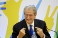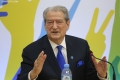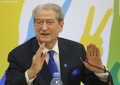 Former Prime Minister Sali Berisha speaking during a press conference at the headquarters of the democratic party. Berisha commented on the visit of the US Assistant Secretary of State, Gabriel Escobar in Tirana and invited people to the Together, We Win coalition's election campaign at the Air Albania stadium.
