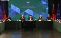 Director of the Tirana police department, Tonin Vocaj, the Director General of the State Police, Muhamet Rrumbullaku, the Minister of the Interior, Bledar Cuci and the EU Delegation in Albania, Alexis Hupin speaking during the 43rd conference of the police chiefs of the European capitals in Tyrants. The three-day conference will be attended by 26 police chiefs from European capitals, who will discuss cooperation between the police and other issues.