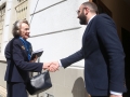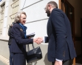 The head of the ODIHR mission for the local elections in Albania, Audrey Glover and MP Gazment Bardhi before a meeting at the new headquarters of the Democratic Party. Glover's visit comes as a result of the series of meetings she is holding with opposition parties before the May 14 local elections in Albania.