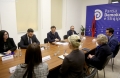 GLOVER'S VISIT TO THE NEW HEADQUARTERS OF THE DP - The head of the ODIHR mission for local elections in Albania, Audrey Glover, the commanding chairman of the Democratic Party, Enkelejd Alibeaj, the legal representative of the DP, Indrit Sefa and MP Gazment Bardhi speaking at a meeting in the new headquarters of the Democratic Party. Glover's visit comes as a result of the series of meetings she is holding with opposition parties before the May 14 local elections in Albania.
