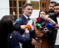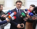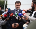 The commanding chairman of PD, Enkelejd Alibeaj, speaking to journalists after the visit of the head of the ODIHR mission for local elections in Albania, Audrey Glover, in front of the new headquarters of the democratic party. Alibeaj said that he spoke to Glover about the situation in DP as well as the violations of the CEC government.